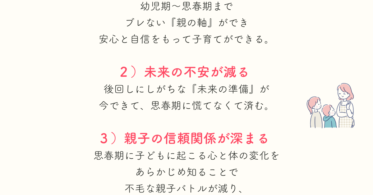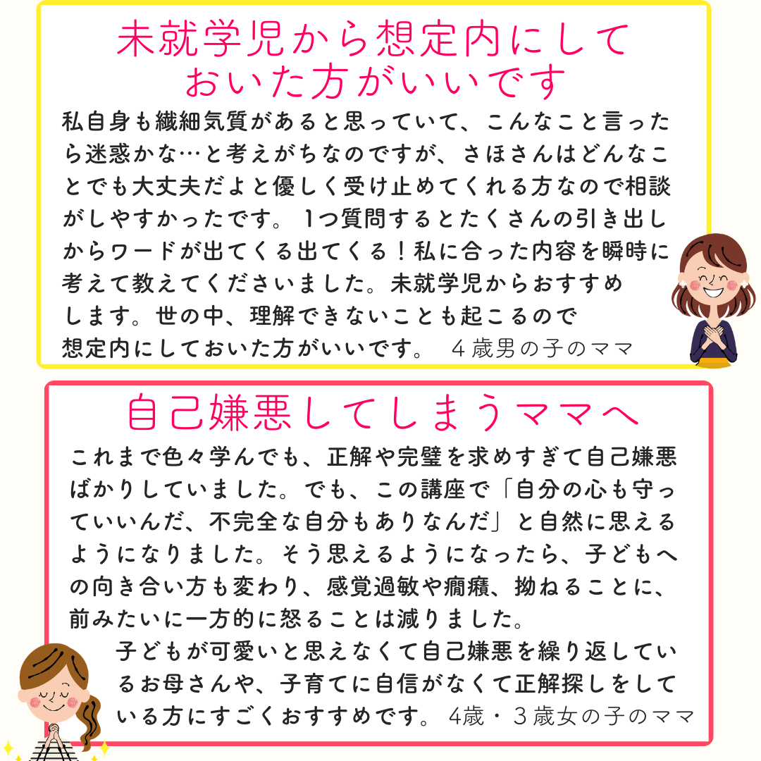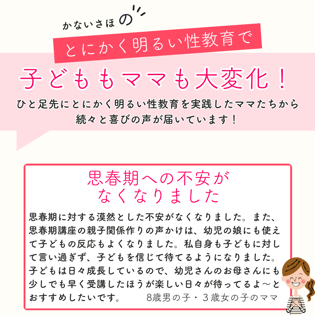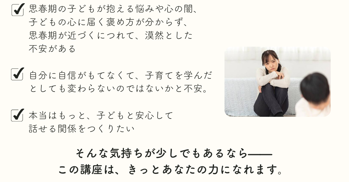 2時間×6日間の初級中級講座 2.5時間×7日間の思春期講座 |