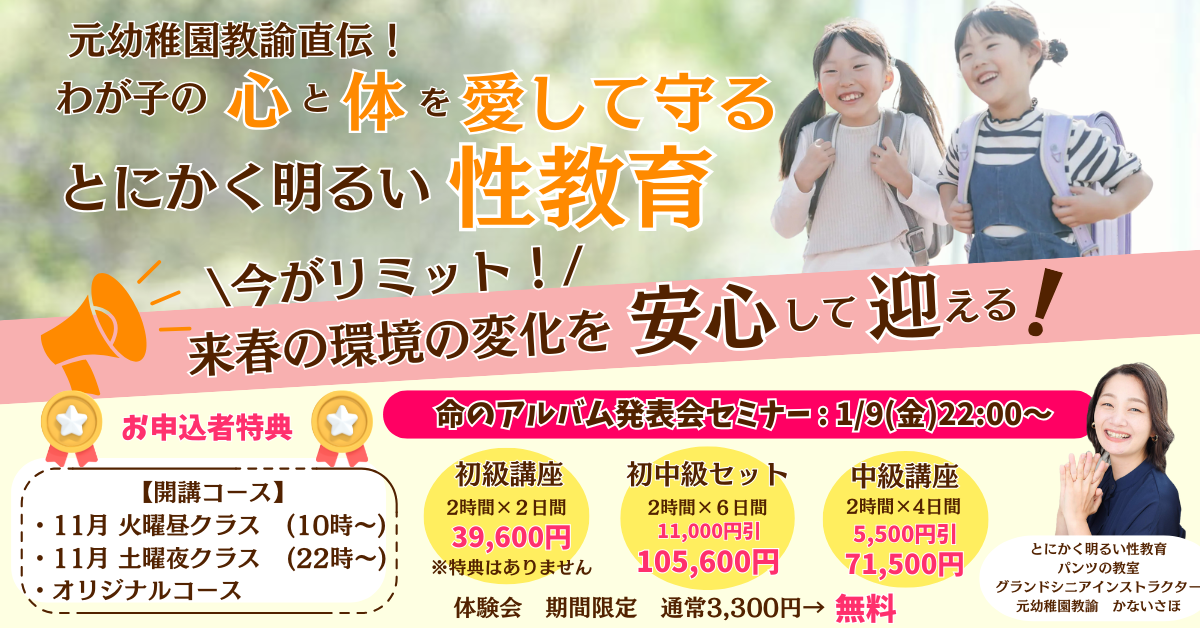 初中級セットまたは中級講座を お申込み期間にお申込みくださった方は ★命のアルバム発表会セミナー 1/9(金)22時~ ★進級・進学対策セミナー(録画あり) 1/30(金)22時~ にご参加いただけます♪ |